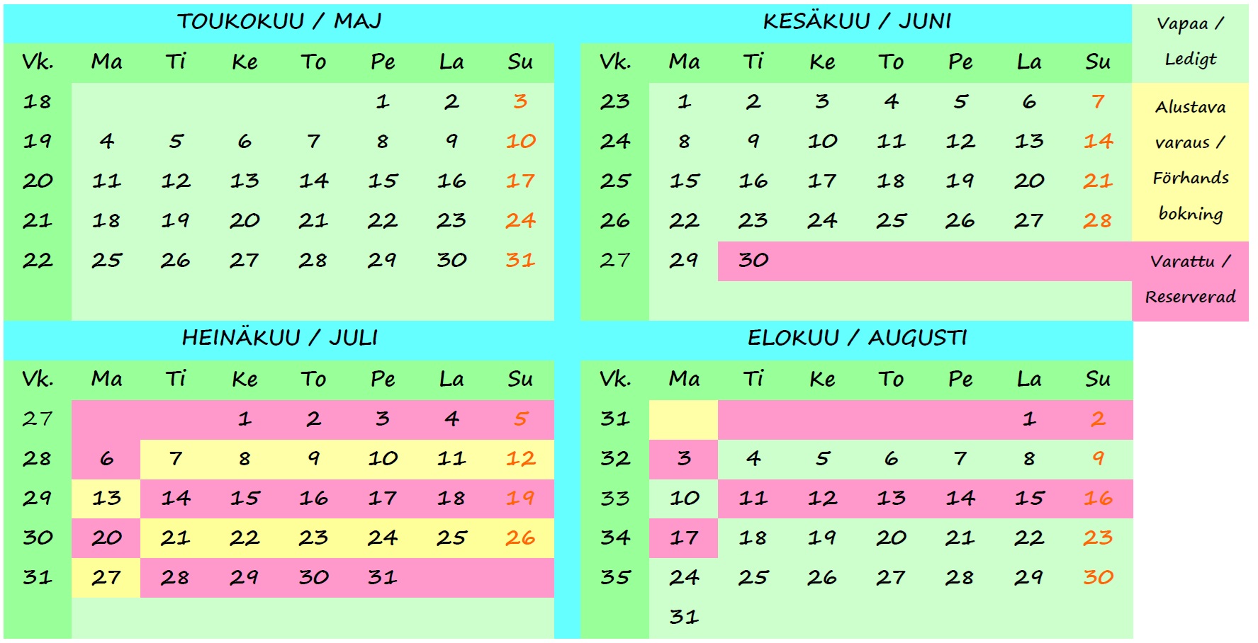 The 2026 booking calendar 10.2.2026: